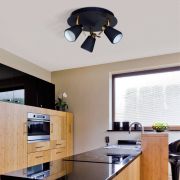 Fabricado en material mecánico, acabado proceso de horno con pintura epoxi negro mate y oro. Provisto de zócalo G9, indicado para lámpara G9 220V 4W (36W). La versión de una luz presenta una base redonda mientras que el de dos y tres luces surge de una base de líneas curvas agradable a la vista.