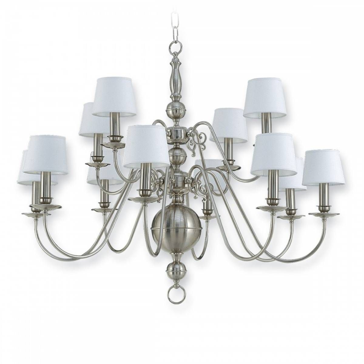 Fabricada con aleación de aluminio, acabada en color bronce mate combinado con brillo, florentino o platil. Posee portalámparas de rosca mignon (E14), en el que sugerimos el uso de velitas 220V 5W. Disponible en doce, dieciseis o veinte luces.